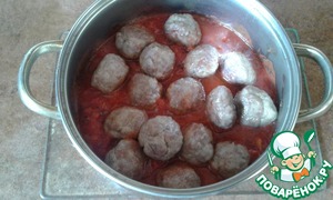 Выкладываем фрикадельки в томатный соус и и тушим под крышкой 5 минут на слабом огне.