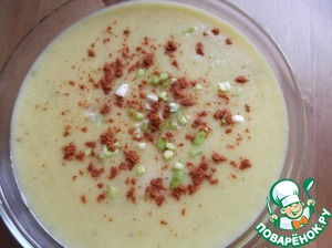 Сваренные овощи и лук смешать в блендере до однородной массы. Перелить смесь в кастрюлю, добавить овощной бульон, молоко, карри, нарезанный или протертый через терку чеснок, лавровый лист, посолить. Варить до готовности.