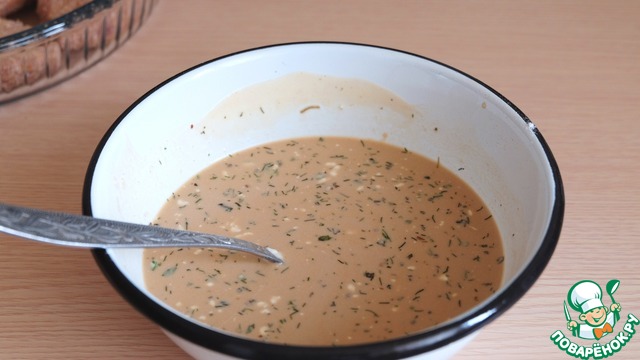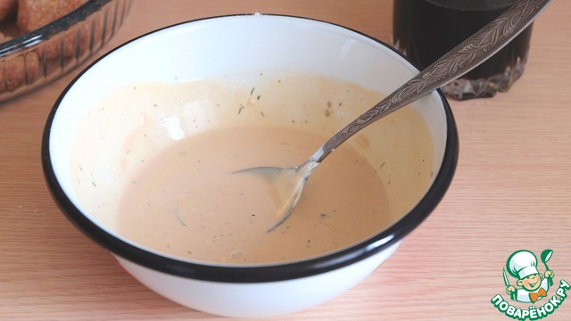 - Пряности (Смесь сушеных трав (укроп, петрушка, базилик) для соуса) — 1 ч. л.