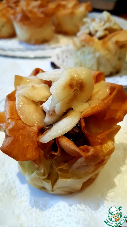 Универсальные хрустящие и очень вкусные корзиночки. Я наполнила их шоколадным ганашем с орешками и замороженным бананом. Наслаждение... Угощайтесь!!!