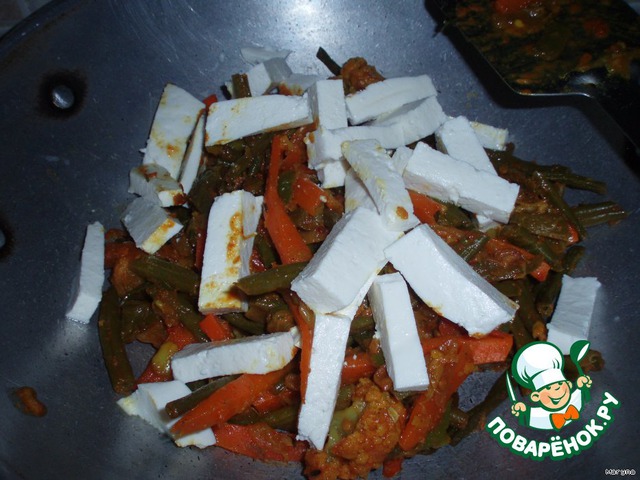 Сразу же добавить кетчуп и кусочки сыра-панира.