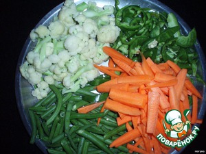 Цветную капусту, морковку, сладкий перчик, фасоль длинно нарезать.