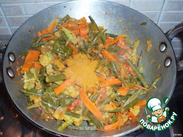 В оригинальном рецепте, за 5 минут до снятия с огня, добавляется приправа "Kitchen King", но её можно купить только в индийских магазинах.