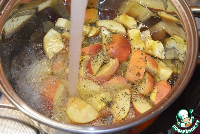 • Залить дольки яблок кипятком и добавить мяту.