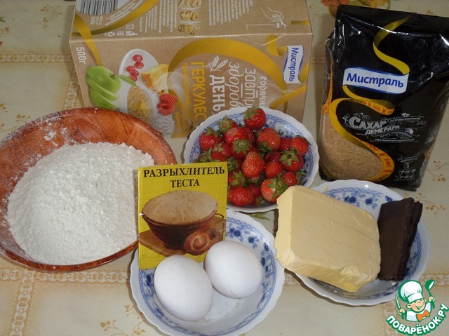 Одна из любимых ягод в нашей семье - клубника. Именно поэтому выпечка с ней всегда идет "на ура". Предлагаю испечь вот такой незатейливый вариант печенья или пирога, кому как... Пробуйте!!!