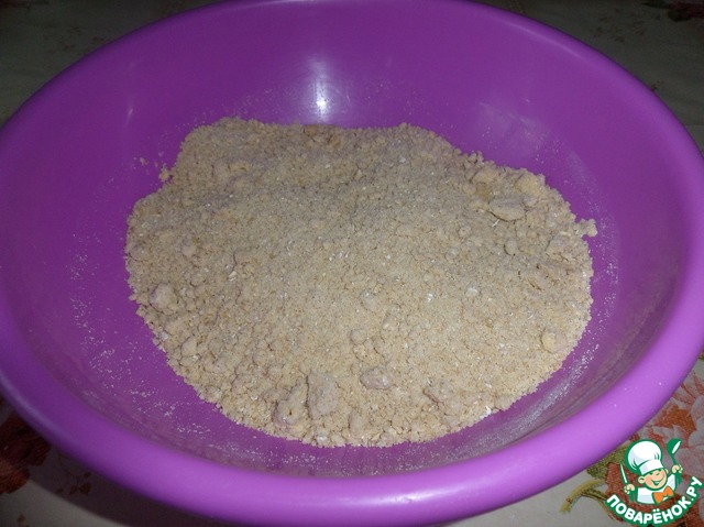 Перетираем все ингредиенты с помощью вилки до состояния крошки.