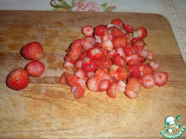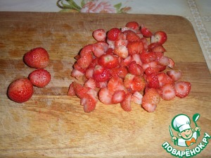 Промываем и нарезаем клубнику.