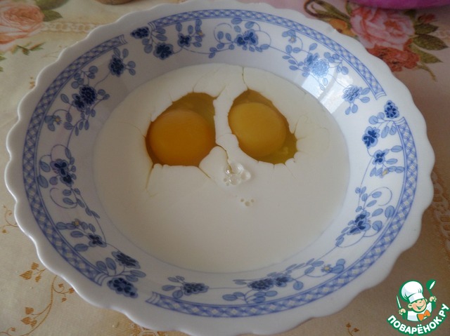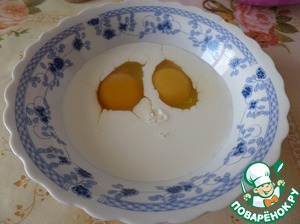 В чашку разбиваем 2 яйца.