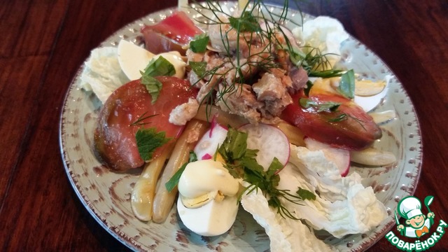 Ингредиенты для «Салат с консервированным лососем и овощами»:
