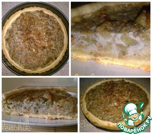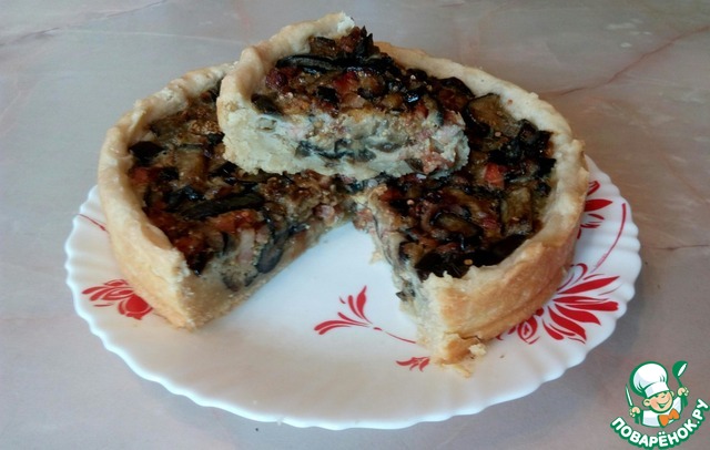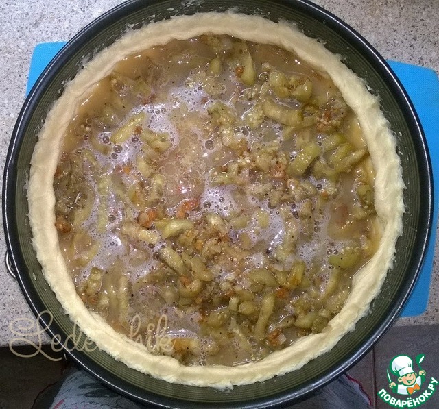 Выложить начинку на тесто и залить взбитыми яйцами.