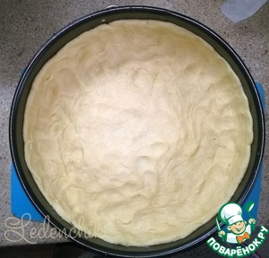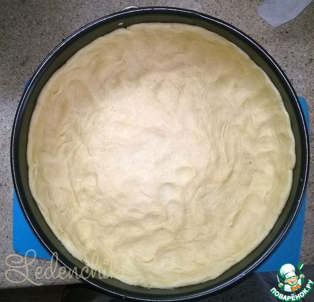 Тесто выложить руками в форму (у меня D26), сформировать бортики