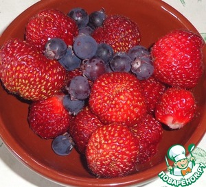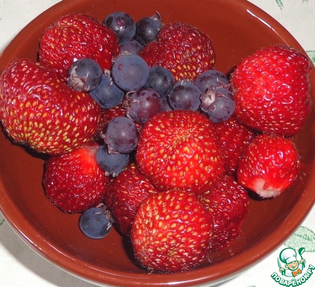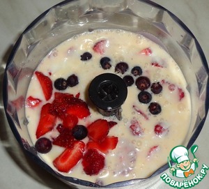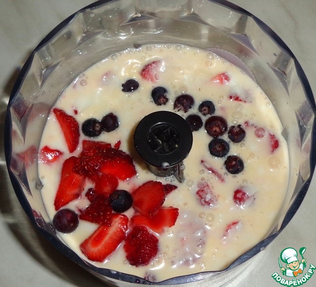 Соединить йогурт, клубнику, иргу и распущенный в воде желатин.
