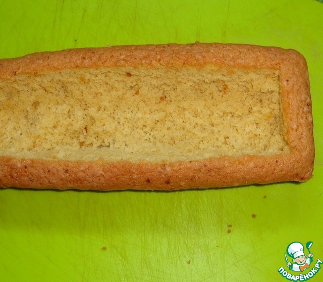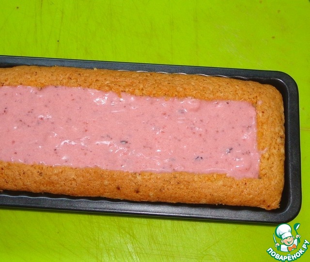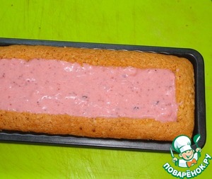 Кекс поместить обратно в форму, поставить в холодильник для застывания начинки.
