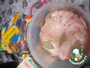Курицу я замариновала целую, но отрезала у нее только грудинку.