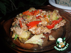 Надоела курица и решила я ее чем-то замаскировать. Особо было не чем, пришлось овощами. Но все прошло удачно. В новом платье ее никто не узнал. Заранее извиняюсь за фото!