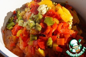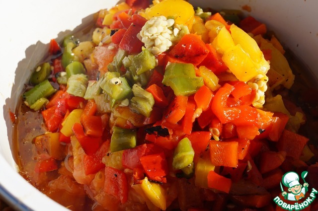 Готовые овощи снимаем в глубокие ёмкости, ибо сока будет...