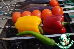 Печём наши овощи до готовности и легкого обугливания бочков, периодически переворачивая.