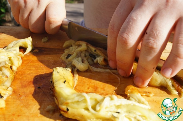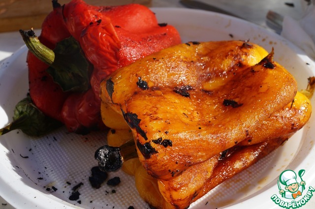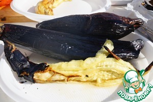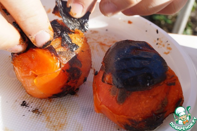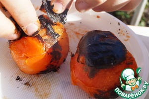 Снимаем с них обугленные шкурки, освобождая сочную мякоть. -