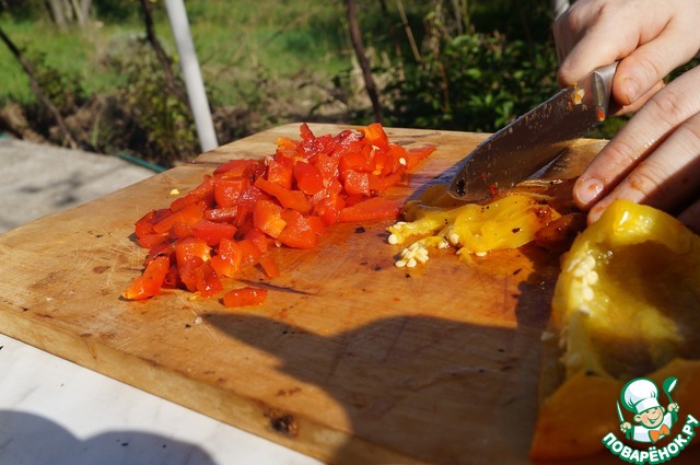 - Перец болгарский (большой, можно разноцветные или 4 средних) — 2 шт