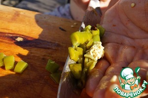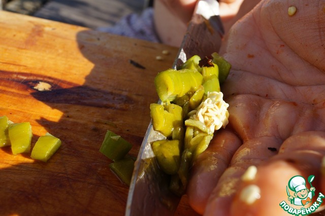 Острый перец тоже чистим и режем.