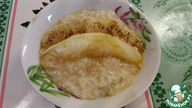 • Пока варится каша на сливочном масле, обжариваем кусочки дыни с одной стороны, переворачиваем, посыпаем корицей и обжариваем вторую сторону. Подаём кашу с дыней.