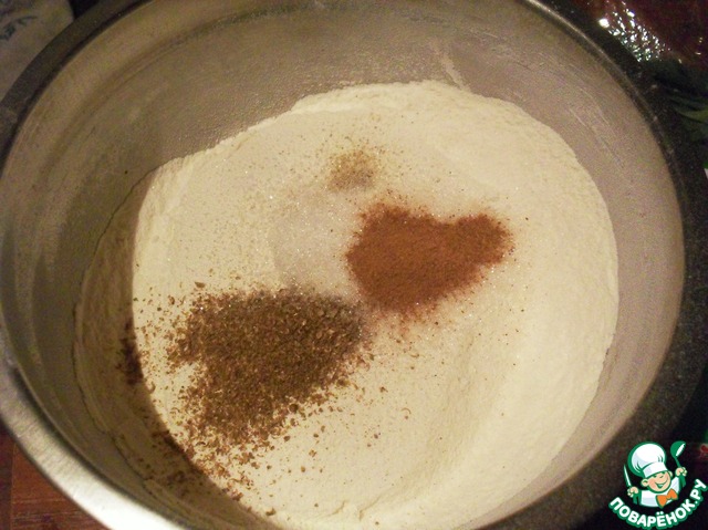 • Перемалываем специи в кофемолке. Перемешиваем с мукой. Все, кроме соды и лимонки. Почему так? Потому что, если вы хотите заготовить такую смесь впрок, то чтобы эта смесь дольше и лучше хранилась нужно добавлять кислоту и соду незадолго до выпекания.