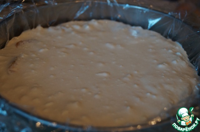 Перед подачей снимаем плёнку и перекладываем десерт на блюдо.