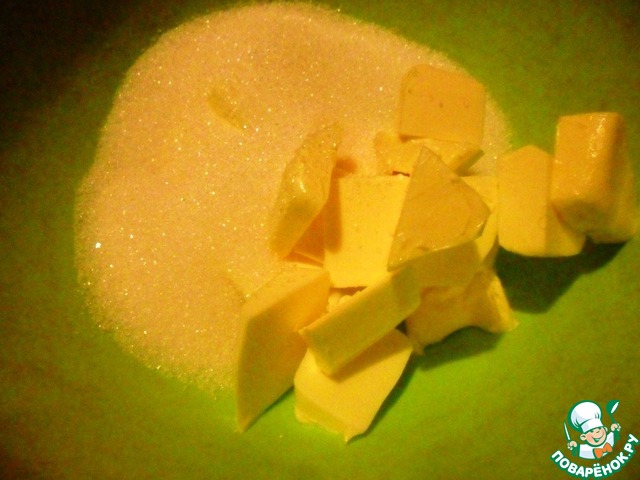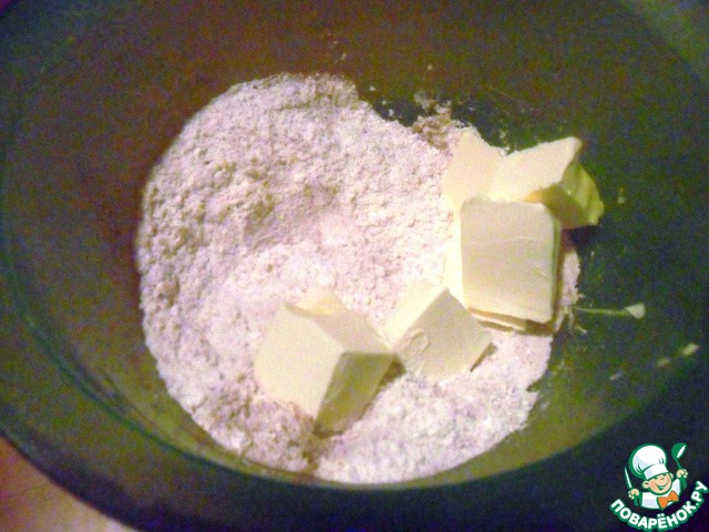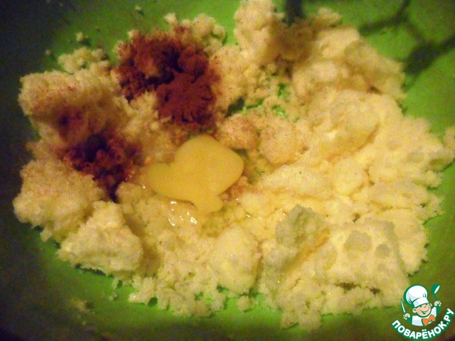 Для штрейзеля муку смешать с корицей, перетереть её со сливочным маслом.