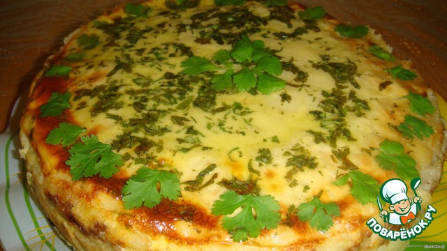 Итак всё ещё раз повторить, предпоследний слой картошки, а последний соус, поставить всё в духовку разогретую до 180*С на 40 - 50 минут.