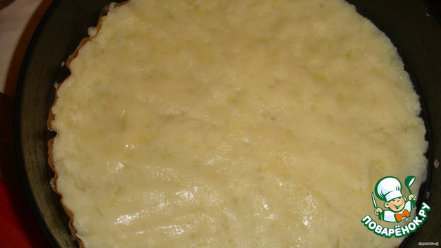 Начинаем собирать наш торт: форму смазать маслом и выложить 1 слой картошки.