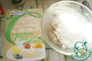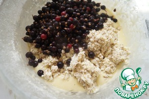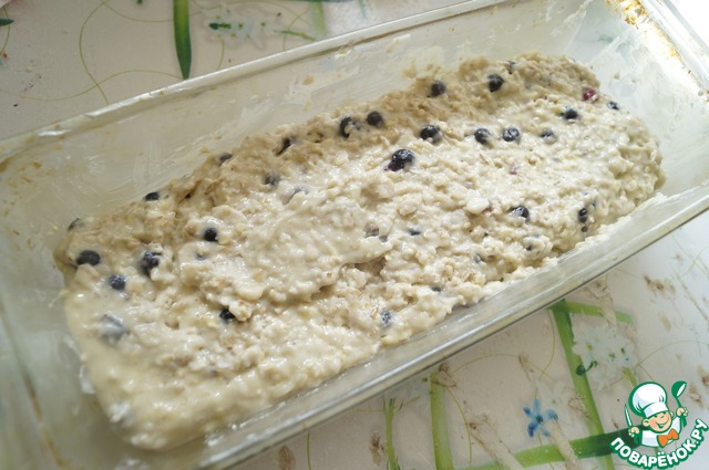 • Затем в массу добавить набухшие хлопья и смородину, хорошо перемешать.