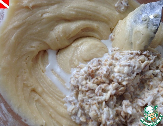 Овсяные хлопья слегка отжать и добавить в тесто.