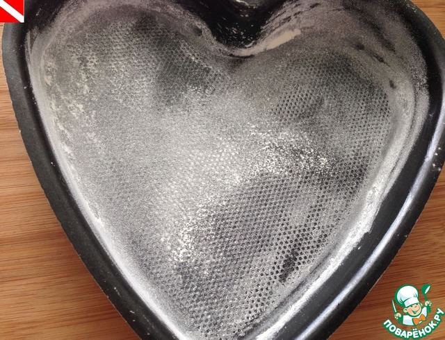 Форму смазать маслом и обсыпать мукой (эта форма равна круглой форме 24 см в диаметре)