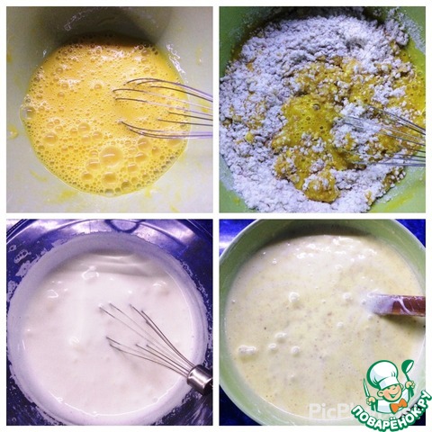 Два целых яйца взбить миксером, добавить к сухим ингредиентам, перемешать.