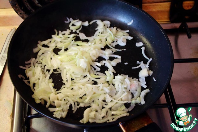 Раскаляем масло в сковородке, лук туда.