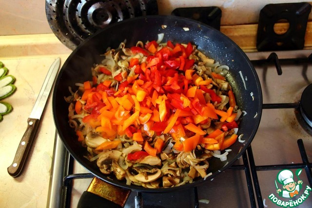 Недолго пожарили грибы, и сразу перец.