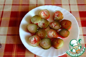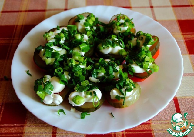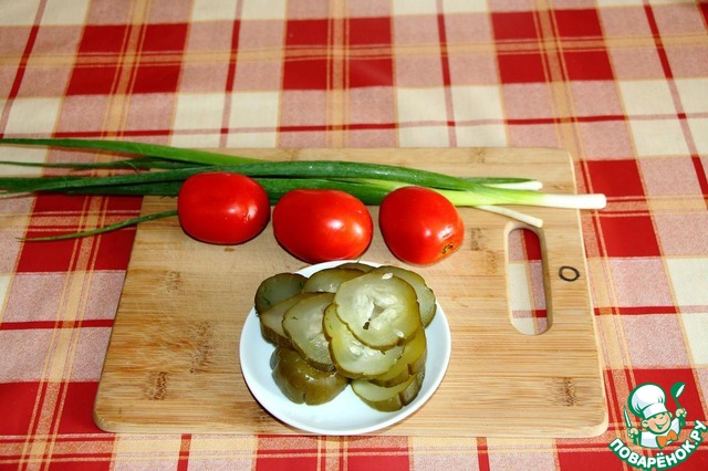 Соленые огурцы также и кладем на помидор.