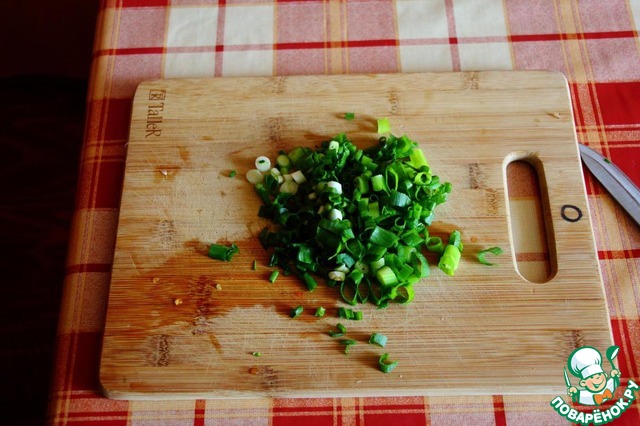 Лук рубим средне-мелко.