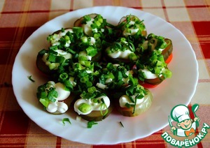 Посыпаем луком. Лук прилипает к майонезу и уаля! Мужское пирожное готово!