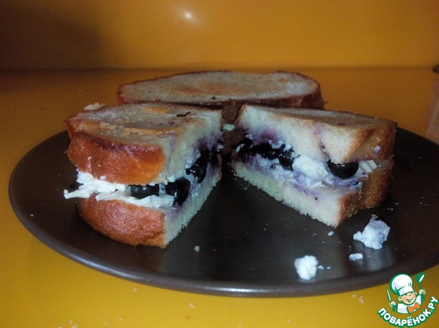 Рецепт «Бутерброд с творожным сыром и черникой»:
