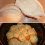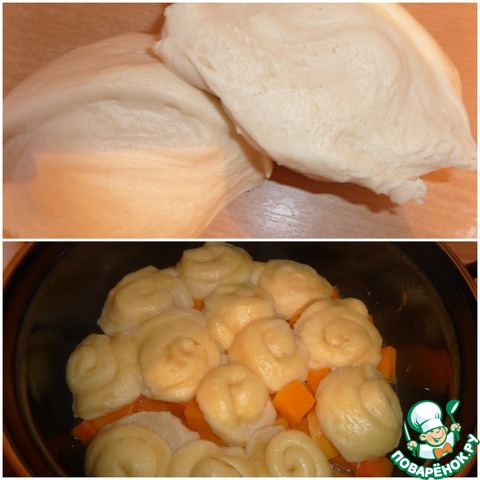 Добавляю ещё муку, замешиваю тесто, пока не перестанет липнуть к рукам. Но тесто должно остаться мягким! Не нужно сильно вымешивать!