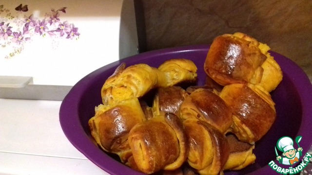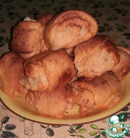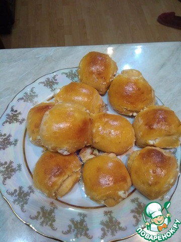 , буквально руки зачесались, сразу же захотелось испечь! Нам всем понравилось, разлетелись плюшечки в раз! Только посолите обязательно начинку, я этого не сделала и мои красавцы вышли малость пресноватыми.Приятного аппетита !