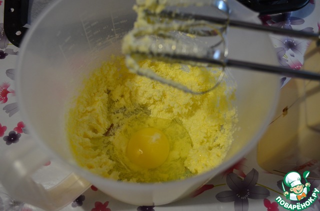 В процессе взбивания добавить яйцо, продолжая взбивать.