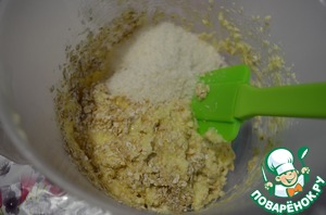 Добавить просеянную муку с разрыхлителем, кокосовую стружку, ванилин.