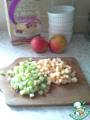 Добавить в него яблоко, ревень, сахар и овсяные хлопья с отрубями от Мистраль.
