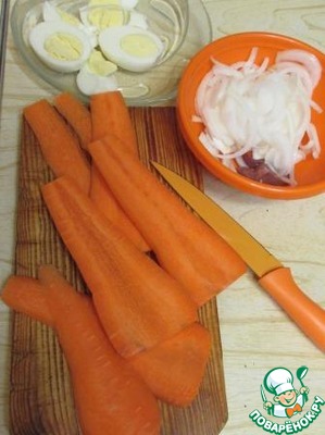 Морковь очистить и нарезать слайсами.