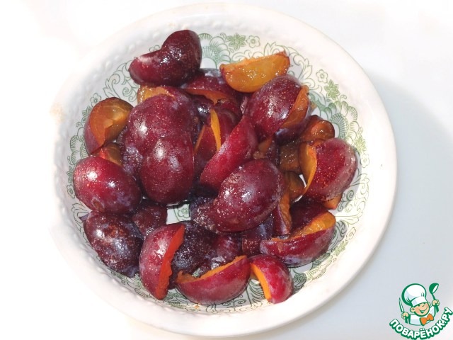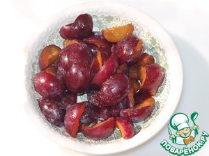 Из сливы удалить косточку и разрезать на 4 части.