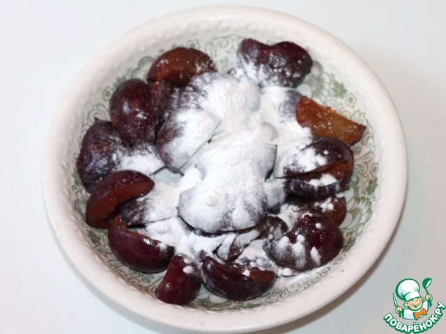 5. Посыпать сливу крахмалом и не перемешивать.