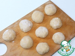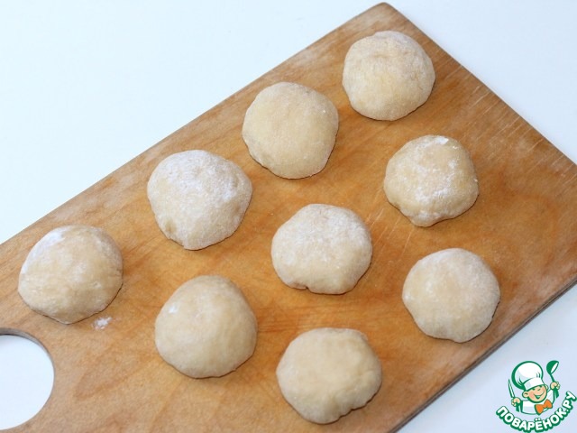 6. Подошедшее тесто обмять и разделить на 9 частей.