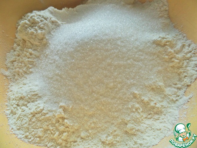 Смешать просеянную муку с сахаром.